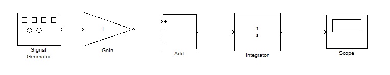 integrator block. The scope block is used to display a signal as a function of time.